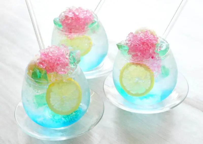 以晶瑩剔透的透明感果凍打造出繡球花的模樣,再搭配荔枝風味的蘇打汽水及清爽檸檬片,消暑又夢幻的飲品登場!![]()
