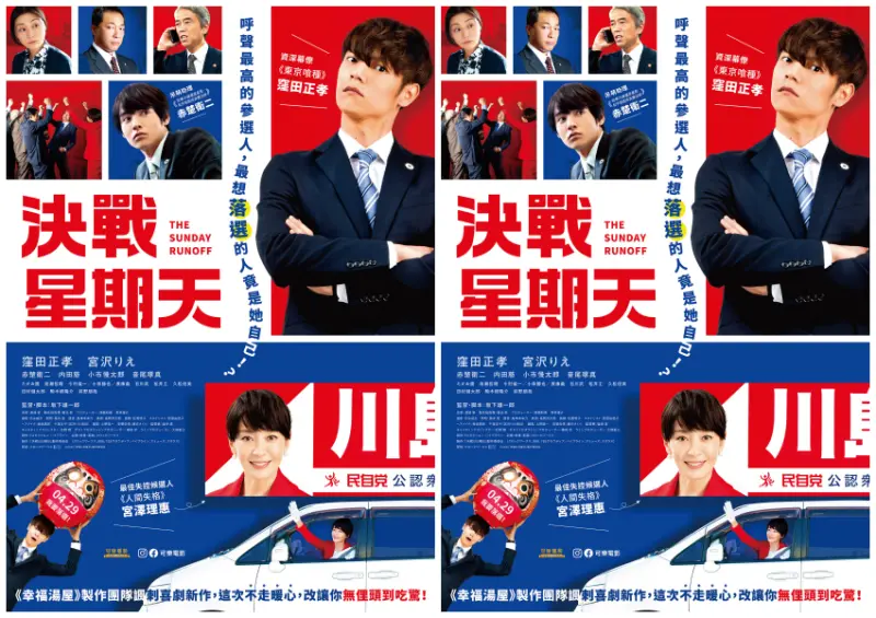 《決戰星期天》敘述意外代父從政的素人候選人川島有美,由宮澤理惠一改之前療癒暖心戲路,飾演傻瓜政二代。對政治一竅不通的她,與消極的幕僚團隊臨危受命力拚選戰,神經大條的川島不僅頻頻暴走失言,更是讓飾演資深幕僚谷村的窪田正孝相當頭痛。