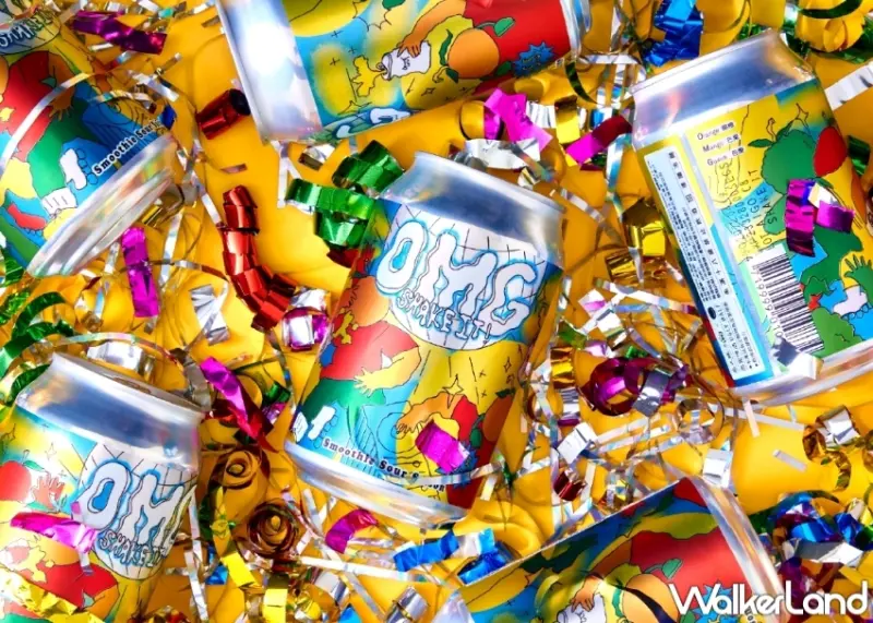同時,「OMG 大舞廳」的酒標設計以手繪感把水果們擬人化,活潑明亮的色調帶出既可愛又魔性的迪斯可派對氛圍。酒標上方顯眼的 OMG 分別代表了柳橙、芒果及芭樂的英文首字母(Orange, Mango, Guava),而 Shake It 大舞廳則是水果們的派對現場,呈現出熱鬧玩味的酒款個性。