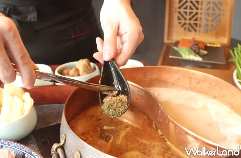 除了經典麻辣鍋底之外,另一個必吃招牌鍋底「芋頭排骨鍋」,則是使用雞架跟全雞慢火燉煮出乳白色湯頭,再加入獨門配方讓湯底更加滑順醇郁,選用上等芋頭心先炸再煮更添湯頭香氣,久煮後的芋頭泥化在湯中帶來微細沙感,風味口感層層堆疊,滋味一絕。
