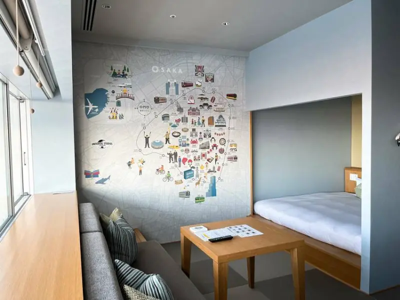 「OMO7大阪新今宮」擁有8種房型、436間房,特色房型之一為「井戸端客房」(6人房),客房裡有標記大阪著名觀光景點的地圖「OSAKA Board」,可以在寬敞的桌子與沙發暢聊與計畫旅程,設有獨立空間的床也是此房型的一大特點。其他特色客房包括彷彿住在秘密基地、設有日式木造閣樓房的「DAN DAN 客房」(3人房),與設有廚房與小型更衣間的「OMO House」(6人房)。