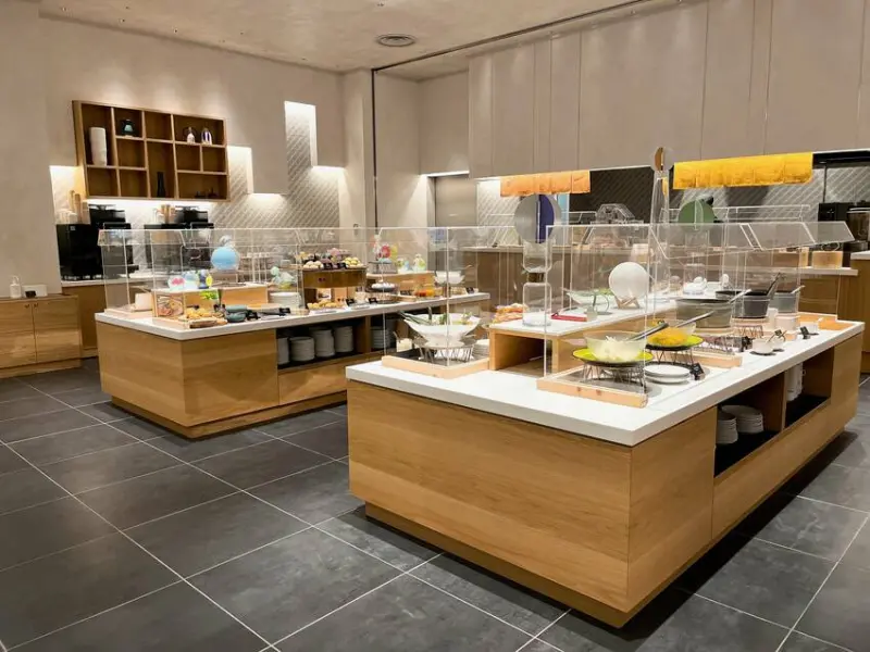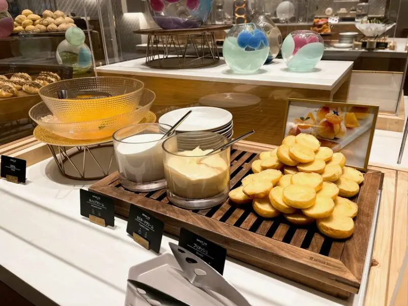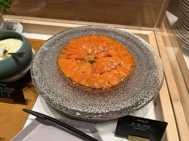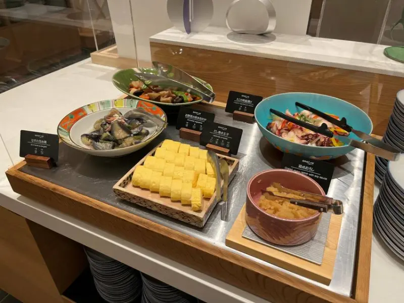 「OMO Dining」早餐以自助餐形式、午餐以單點,晚餐以單點或套餐的方式提供,早餐種類相當多樣化,從西式到和式應有盡有,麵包、貝果、煙燻鮭魚、大阪當地特有的蔥燒、醃漬小菜全都能在這裡找到,就連生乳包、閃電泡芙等甜點都一應俱全,讓你絕對不會想特別到外面用餐。