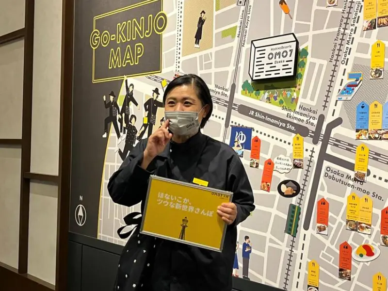 「OMO 周邊活動」是 OMO 品牌的一大特色,透過「GO-KINJO 地圖(周邊地圖)」以及「周邊嚮導 OMO Ranger」可以讓旅客更加融入並了解飯店周邊地區的特色以及魅力。根據不同的路線,也有不同的收費標準,其中免費的「走吧,內行人的新世界散步」是以通天閣、鏘鏘橫丁等景點而聞名的「新世界」為主要導覽景點,在周邊嚮導 OMO Ranger 的帶領下, 遊客可漫步在大阪老街,復古的氛圍將帶給大家一種時光穿越感。
