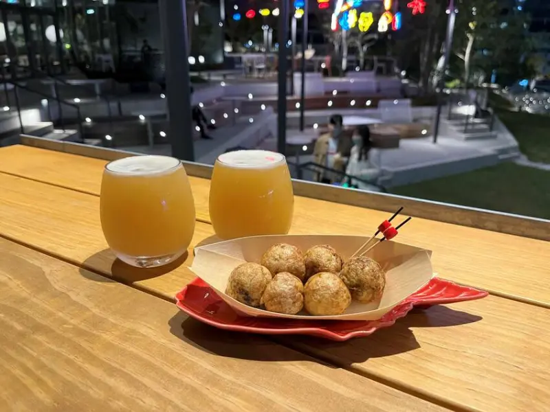 除此之外,只要憑房卡就能在「OMO Base」落地窗外的小攤位,每人每天限領一份章魚燒與一杯啤酒,享受愜意的大阪之夜。