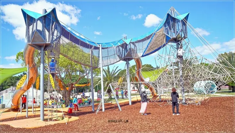 以冒險恐龍島為主題的特色遊戲場,在公園裡不時可以見到恐龍的蹤跡,還有叢林攀爬區、恐龍化石攀爬區、沈船攀爬區、彈跳床、共融式旋轉盤、鞦韆、溜索及火山溜滑梯等設施,公園腹地還不小,整個有趣又好玩,就連大人看著看著都忍不住想要一起玩了~<全文介紹>