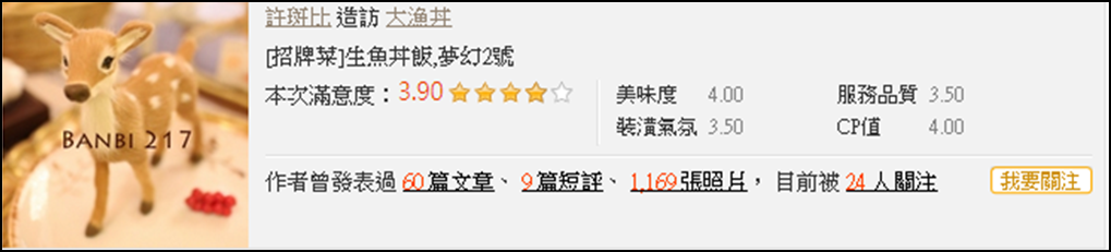 許斑比:夢幻丼,有牡丹蝦、干貝、海膽、鮪魚、鮭魚、蝦卵、玉子燒、黑豆、醃漬的蔥而且豐盛到我吃完覺得有腦中風的感覺,哈哈哈哈哈哈!豐富的食材呈現豐富的顏色,這不毒殺人才怪咧!