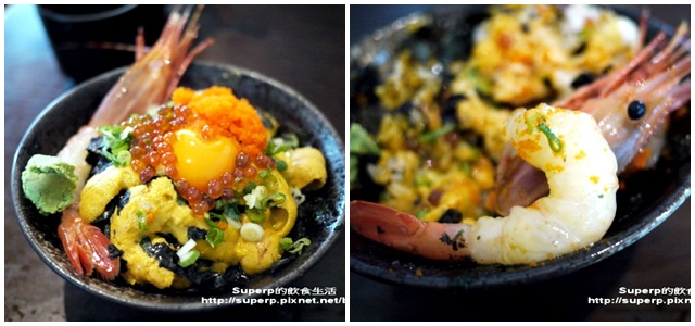 彼得覓食趣:海膽的份量不少。裡面還有飛魚卵,鮭魚卵,蛋黃,特大牡丹蝦,干貝,海苔。新鮮度沒有話說,而且都夠肥碩,尤其牡丹蝦的體積真的比一般來的大,很推!