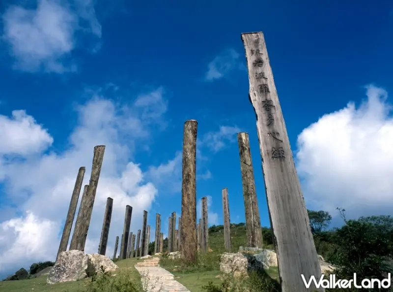 此外,再往前步行約10分鐘即可到達昂坪祕境─由38條木柱刻上心經所組成的「心經簡林」,木柱高度由八至十公尺不等,刻上著名國學大師饒宗頤的《心經》墨寶,木柱依經文順序排成「∞」符號,象徵無限大之意,遊走於木柱旁的婉蜓小路,置身空靈致靜的環境中,正適合疫後的心靈療癒。