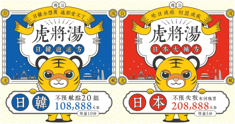 隨著各國疫苗施打率的提升,研議入境開放的好消息也陸續傳出,看好2022年旅遊市場可望逐漸復甦,知名的低成本航空公司「台灣虎航」在5月25日早上10點起於官網開賣2022年冬季航班,全航線單程最低價798元起,時間一到依舊讓不少民眾急著搶購!台灣虎航還推出3種不受機票浮動價格影響的吸睛套票,分別是售價52,888 元的A套票「日本不限航點來回機票」(共10組)、售價108,888元的B套票「日韓不限航點來回機票」(共20組)、售價208,888元的C套票「日本不限航點無限來回機票」(共5組),雖然看似要價不斐,但CP值其實超高!因此35組套票一上架沒多久就立刻被手速快的網友全部掃光了。![]()