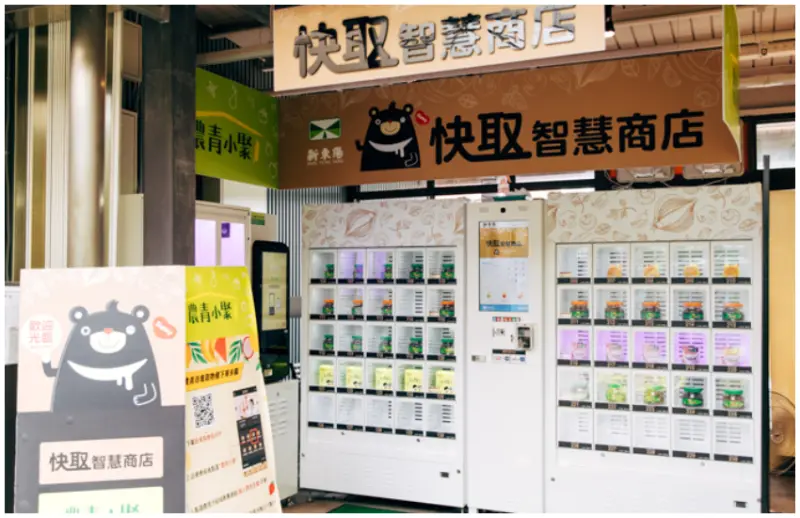 穿過用餐區來到農民直販所,這裡提供青農從產地直送的新鮮農產品,常常能夠選購到剛摘採的蔬果。除了在現場挑選農產品,前往服務區前還可以使用新東陽會員APP「農青小聚」專區,線上挑選心儀商品下單,再到新東陽關西服務區的取物櫃掃描 QR Code ,零接觸自取當季新鮮蔬果;也別錯過新鮮的現切水果和超激甜現煮玉米,品嚐台灣在地美味就是這麼方便!