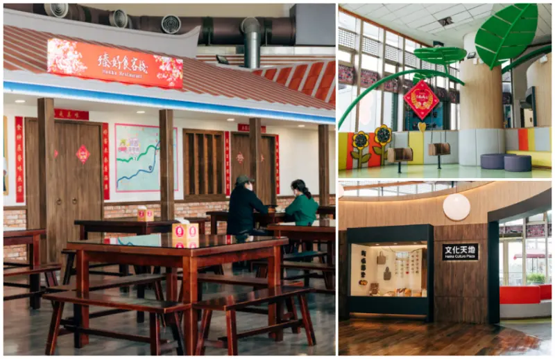 另外位於二樓的「臻好食客棧」,整體以客家三合院意象設計,供應道地客家美食。料理長楊勝閔曾受邀參與「中日本服務區料理大賽」,還登上日本專業料理雜誌的「料理王國」專題報導。「臻好食客棧」秉持客家純樸精神,選用小農種植的在地食材,將傳統客家口味融入創意料理思維。特別推薦超人氣的個人餐,主餐有多種口味可以選擇,並搭配以客家元素特製的六道小菜、甜點與湯品,絕對讓你吃得巧又吃得飽!用餐後還可以到旁邊的「文化天地」逛逛,精選了各式客家文化的生活用品、服飾及手工飾品展示,絕對能為旅程留下美好的回憶。另外一側設有親子室內休憩區,可以讓孩子們在此玩耍,家長也能在旁邊的長椅休息,安全又放鬆。