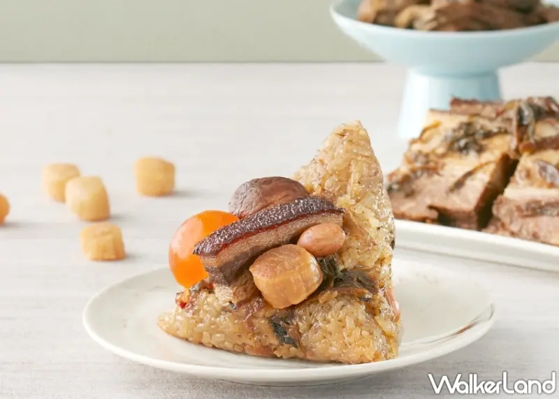 其中,頂級奢華的「極品虎掌帝王粽」大走海陸頂級食材風!選用高檔配料,虎掌(蹄筋)、整顆鮑魚、干貝等奢華食材,讓饕客猶如帝王般的頂級享受,而「招牌蛋黃鮮肉粽」改良台式南部粽手法,嚴選在地上等豬肉,搭配整顆紅潤剔透的鹹蛋黃,特製醬汁慢燉,入口重溫記憶中家鄉的好滋味。