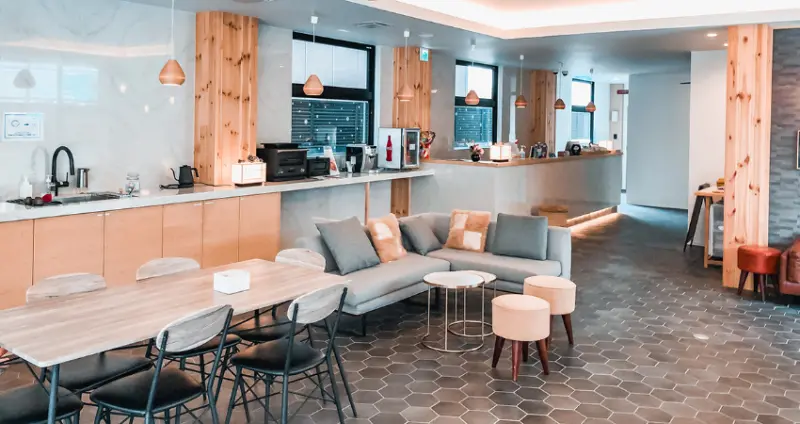 和一般中規中矩的旅館不同,Hotel Imagine Kyoto的大廳設計更近似青年旅館,在牆面有洗手台、印表機、快煮壺、飲料小冰箱、咖啡機和微波爐等。所有入住房客都可以像是住在青年旅館一樣,在大廳替自己煮一杯咖啡、使用筆電。![]()