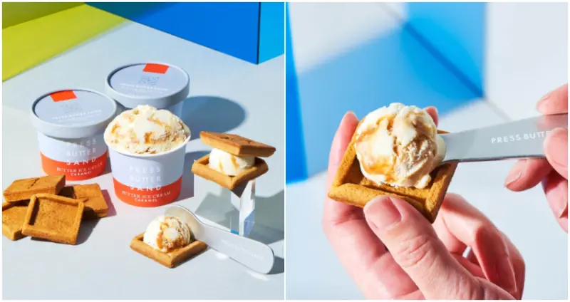 一到夏日就想要來點冰冰涼涼的冰淇淋消消暑氣!本次亮相的奶油冰淇淋(バターアイスクリーム)由濃郁的奶油風味冰淇淋搭配香氣四溢的焦糖,輕嘗一口奶油與焦糖的香甜滋味在口中化開,留下香濃的餘韻。亦可搭配PRESS BUTTER SAND的餅皮一起享用,製成冰淇淋夾心三明治,增添口感,美味度UP!![]()