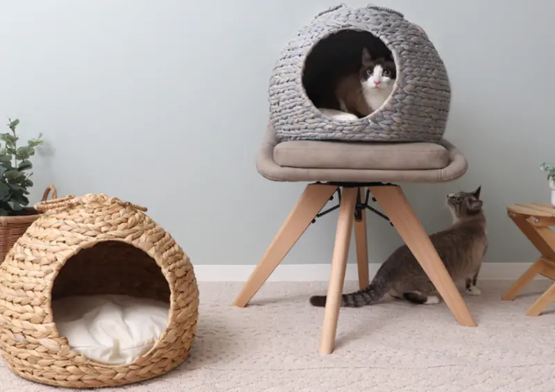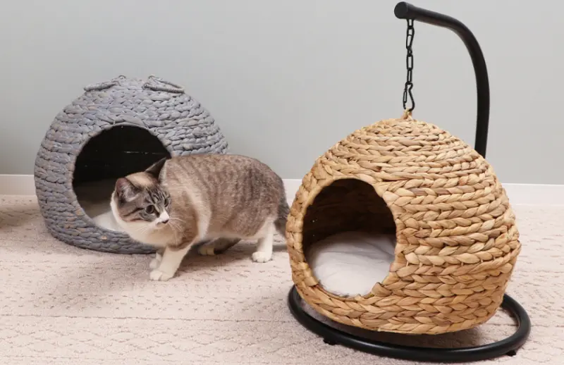 這款蛋型編織屋品名為「nenne」,材質使用了乾燥過後的布袋蓮,再交錯編織成牢固的小屋。乾燥布袋蓮質感柔和,不會刺傷貓咪的皮膚,同時,觸感也較天然,沒有塑膠、尼龍的人工感。表面有水草紋路的自然光澤,使整體更顯質感。nenne具基礎保溫功能,夏涼冬暖。蛋型編織屋可以當作貓咪的避難所,如果家中突然有來客,或是水電施工人員,也不必擔心貓咪直接暴露在陌生人的視線之中。![]()