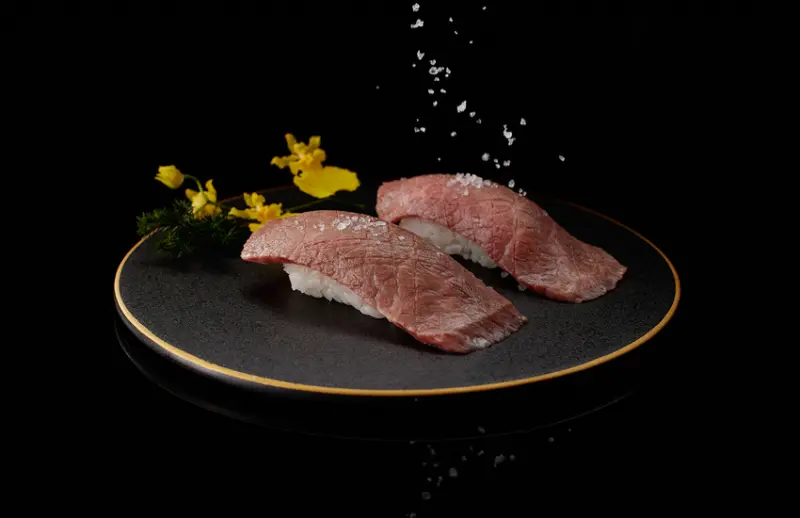 選用入口即化的和牛,由料理長慢火炙烤,越嚼越勻、越勻越香,和牛與醋飯滋味交融淡出,方留下層層餘韻,輕輕迴響。