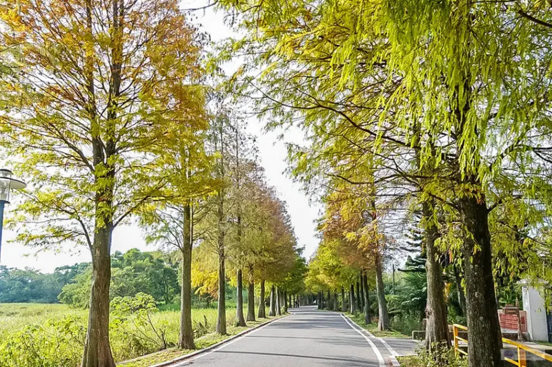這條大道還因為整排的落羽松太美而改名為落羽松路,簡直太特別了。落羽松的季節大約從11月~2月左右,隨著季節轉換由綠漸漸轉紅,整排的林蔭配上藍天白雲可說是美不勝收,喜愛拍拍美照或自然美景的不妨來此走走,免費的景點也能讓你拍得開心。<全文介紹>