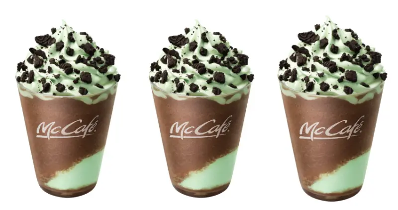 這次引起話題的麥當勞OREO新品當中,「OREO薄荷巧克力冰沙」是今年首次推出的新商品,基底使用了薄荷味的鮮奶油、微苦巧克力冰沙與薄荷糖漿,最上層再一次擠滿薄荷鮮奶油,並撒入滿滿的OREO餅乾碎片,不管是巧克力控或是薄荷控,一定都會對這項飲品愛不釋手、拼命回購。