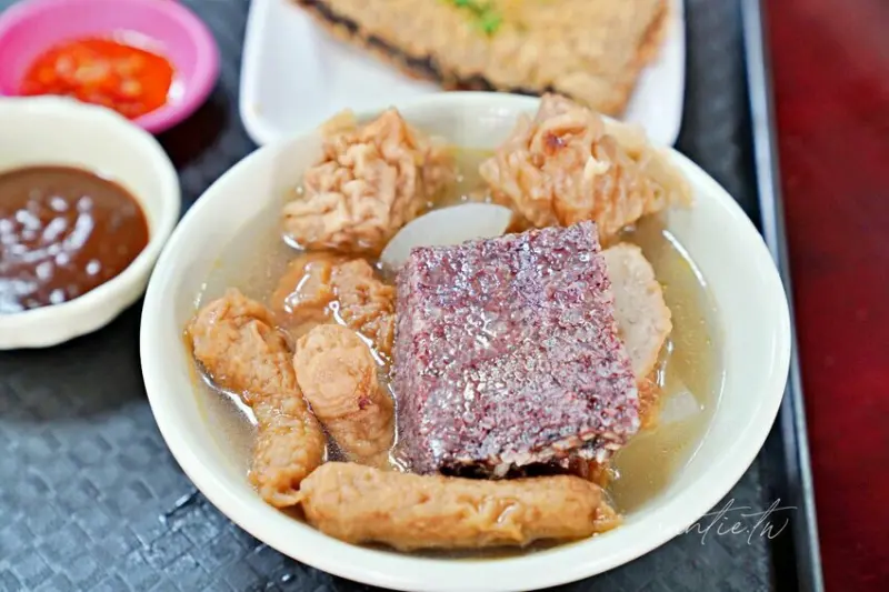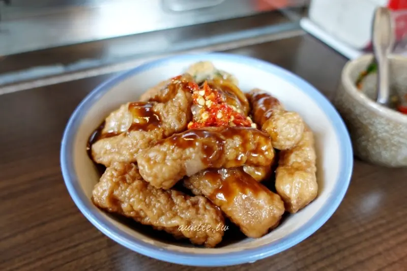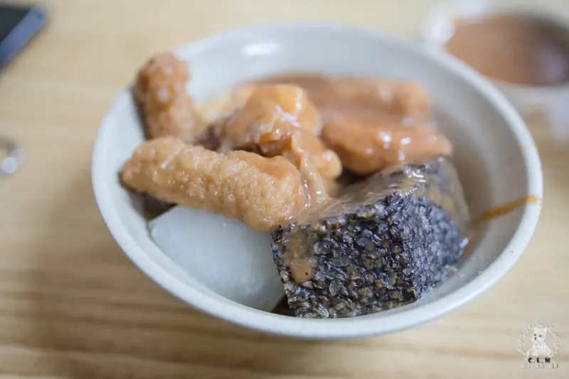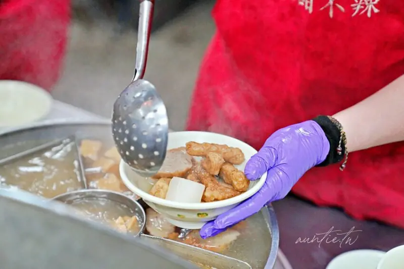 大片的甜不辣,及甜不辣條、竹輪、油豆腐、貢丸、魚丸、蘿蔔、雞捲等,甜不辣保留著Q度不軟爛,還有魚漿的香氣,表現得真的很優秀!最愛的是冬天的蘿蔔,顯得特別地甜!魚丸及貢丸也很Q彈,幾乎每一項單品都很好吃!<全文介紹>