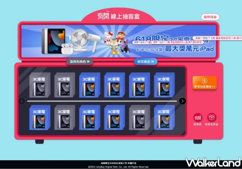 有閑購物618限定盲盒機:https://walkr.tw/QNIYraxi