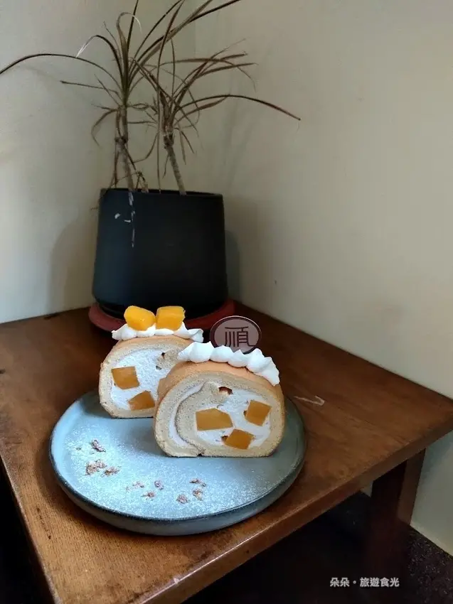 芒果捲切片的芒果很甜水分高,蛋糕體本身OK但無過多驚豔,但生乳捲切片的奶油挺細緻順口。順風號的店員妹妹很親切可愛,離開的時候會對客人說「順風」,感覺好暖喔。 <全文介紹>