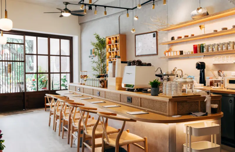 「CHIT CHAT」品牌名稱源於美國俚語「輕鬆閒聊」之意,以兩個交流的對話框,象徵人們輕鬆自在地在舒適空間中放鬆交流。位在南京東路的主幹道上,「CHIT CHAT Café南京店」以白綠相間大理石,搭配深色木紋設計,空間主色調呼應品牌Logo橘色與綠色,整體呈現出沉穩的商務設計風格。開店至今,不僅深受附近的上班族喜愛,也是不少人的口袋咖啡廳。![]()