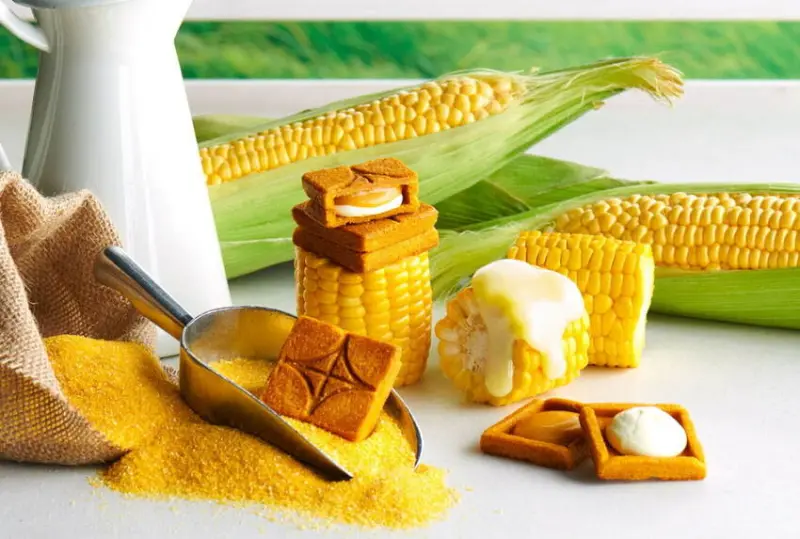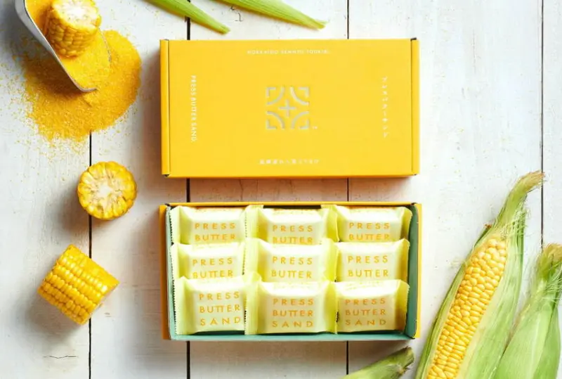 奶油和焦糖是「PRESS BUTTER SAND」的美味致勝關鍵,這次的內餡更加入了濃郁的北海道製煉乳,營造出柔滑優雅的甜味;不僅如此,還將北海道玉米粉和將乾燥玉米顆粒加入餅乾的麵團當中,讓你在吃的時候,每一口都能嚐到玉米特有的香甜氣味。