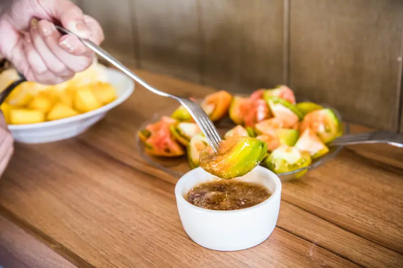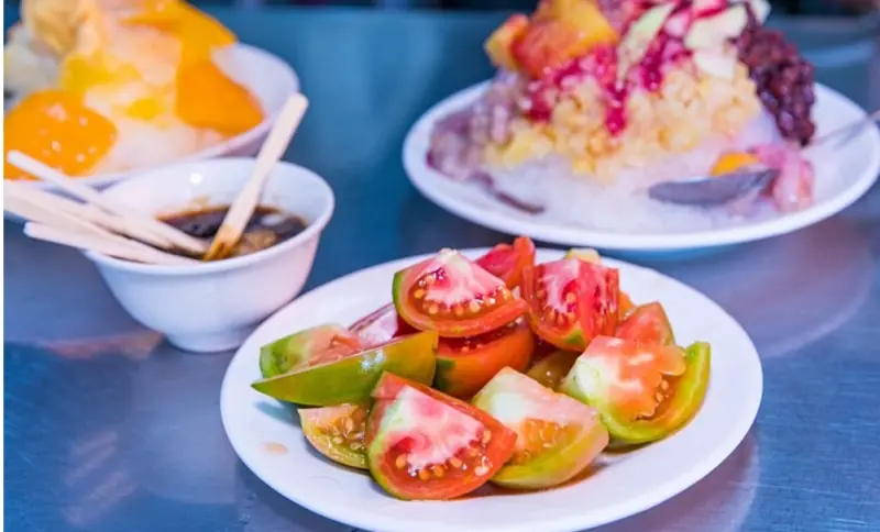 此外,來到冰果室時,道地的傳統吃法是還會再點一份「番茄切盤」,並沾上用醬油、糖粉、薑泥、甘草粉特調成的醬汁,在炎熱的夏天食用相當開胃;不過有些冰果室僅賣現打果汁與現切水果,像是「福生冰果店」與開業近一世紀的「朝林鮮果汁」,因此如果想要吃冰的話,可要注意別白跑一趟喔。