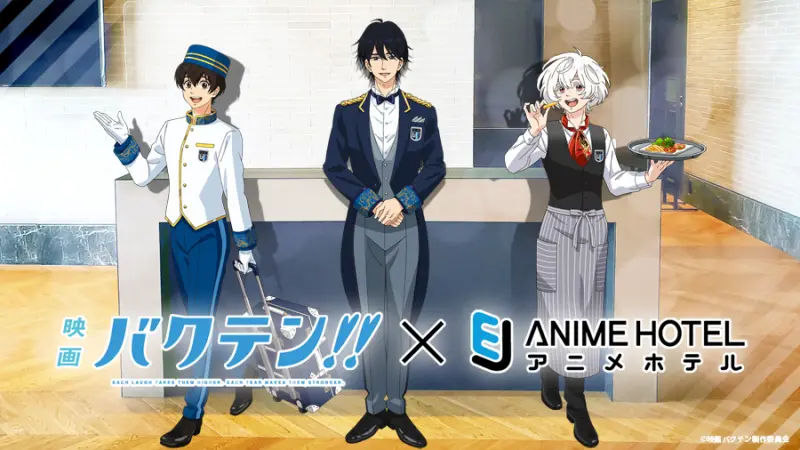 本次EJ動漫酒店的《劇場版 後空翻少年!!》主題客房會由人氣角色的雙葉、美里和真白三人組接待住客。客房內有專為聯乘主題客房而全新繪製的三人組酒店員工服人形立牌、以及三人全新錄製的語音等。以私立蒼秀館高中的成員去裝飾的客房,可以欣賞影片和挑戰任務小遊戲。此外,酒店更特別為住客準備了能帶回家珍藏的限定周邊禮品。