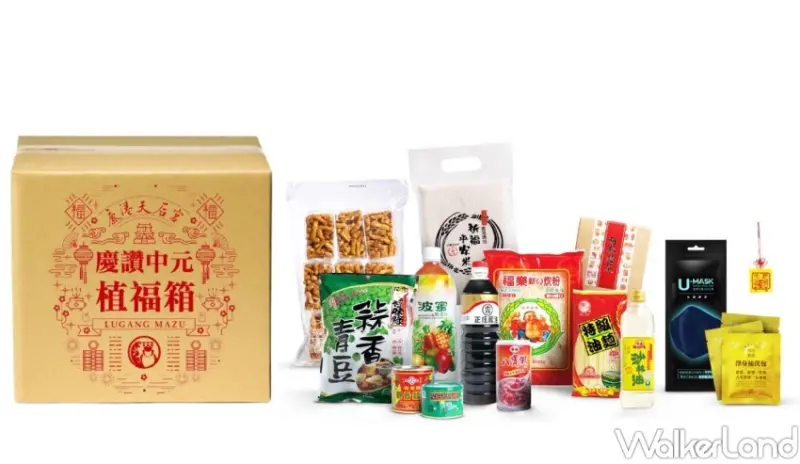 其中,與鹿港天后宮合作的中元節宮廟贊普服務,鹿港天后宮「慶讚中元植福箱」,售價1200元,6/29(三)~7/31(日)開放預購,內含12項供品外,還有媽祖過爐加持保庇平安祈福的淨身梳洗包、平安符和防霾PM2.5立體口罩,祈福箱套組有宮廟周邊小物加值,祈求上天平安幸福。