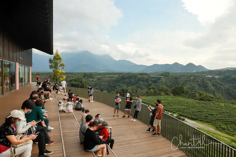 鹿蒿咖啡莊園的主建築是清水模搭上木頭設計而成,雖然外觀簡單,但這樣一棟建築坐落在茶園裡卻是說不出的清爽舒適。穿越過建築就能達到IG上最著名的鹿蒿咖啡莊園的觀景台,順間茶園、山谷、群山包圍的美景立即出現在眼前<全文介紹>
