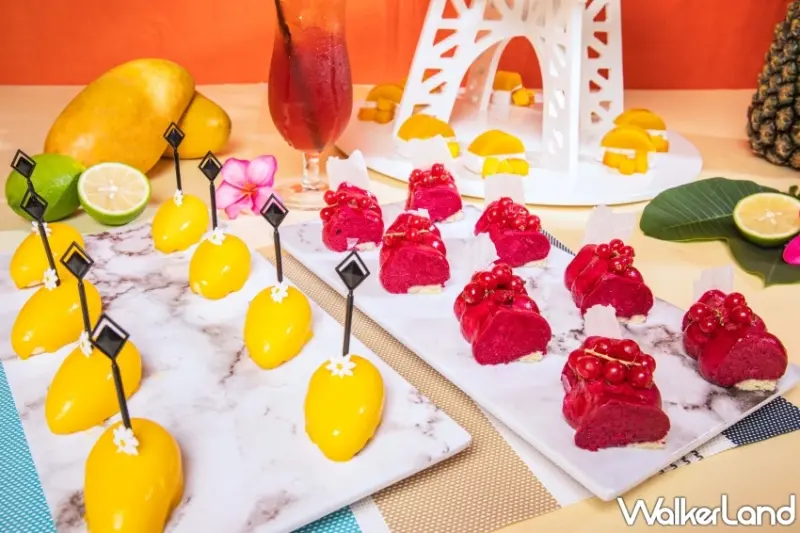此外,夏季甜點和冰品則是推出「夏の戀」甜點饗宴,以夏季盛產的新鮮芒果與熱帶水果為主題推出多樣繽紛甜點,包含「芒果西米露凍」、「熱帶水果慕斯」、「芒果椰子奶酪」、「黑醋栗蘋果慕斯」…等精緻甜點。其中直接將台灣復古冰菓室概念搬入Buffet,在顆粒較粗的古早味鑽石冰上淋上香甜的黑糖水,再豪邁加入手工熬煮的珍珠、綠豆、椰果..等配料,最後倒入些許濃郁煉乳,讓人忘卻這夏天的炎熱。