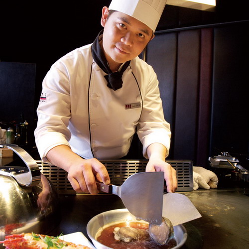 擁有40年歷史的鐵板燒其實是發源於日本料理中西餐與中餐的結合,產生了把廚房搬到外面,一邊和客人進行交流的同時還讓客人邊用餐邊欣賞到廚師廚藝的一種餐飲形式。漸漸地,這種飲食文化也傳進台灣,經過了三十年的發展和改良,衍生出一種結合法式、中式和日式的新飲食方式,通稱為法式鐵板燒。最大的享受就是能夠將美味一次進行到底,無論是一道小小的前菜,還是後面的主食,所有的菜色自始至終都是由同一位廚藝長為你獻藝。並且在完成菜肴的同時,以各種花色精美的擺放呈現在眼前,卻毫不流失佳肴的鮮嫩與醇香。