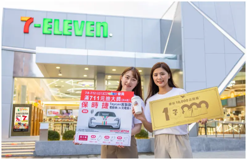 歡慶統一企業集團「亞萬門市」開幕,為感謝消費者,7-ELEVEN自7/8-7/12單筆消費滿711元持八大指定信用卡與 icash Pay 享立折100元優惠 , 7/10~7/12 限時三天更針對 OPEN POINT 會員推出單筆結帳金額滿 711 元加碼送 OPEN POINT 點數 100 點回饋。活動期間購買 OPEN POINT 行動隨時取指定飲品 1 萬元組合1 組,加碼送1份亞萬紀念版黃金鈔票 (價值5,000元、限量1萬份) ;同步推出「亞萬紀念隨取卡」,單張售價 1,000元,高達711 個名額有機會刮中最高 1 萬元面額;更結合康是美、夢時代購物中心、統一時代百貨台北店/高雄店等15 個關係企業品牌 ,以及夢時代購物中心、統一時代百貨各大品牌萬件商品同慶、最高回饋達26%,OPEN POINT 會員於 7-ELEVEN 門市與指定品牌消費每滿 711 元,即獲1次抽獎資格,最大獎為全球獨家保時捷電動汽車乙台 (總價值471萬) 。※活動詳情請見官方網站說明