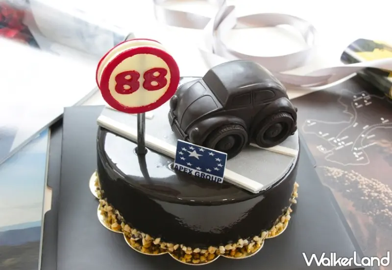 每個男人的心裡都住著一個小男孩。今年父親節,台中日月千禧酒店點心坊主廚蘇育民以此為創作靈感,精心打造貼近男性喜好,且童趣十足的6吋「旅程」父親節蛋糕。造型主要搭配復古黑巧克力車、跑道以及限速88的指標,喚起爸爸的童年回憶。口味上巧搭巧克力黑戚風蛋糕、乳酪慕斯以及森林莓果蘋果餡,交織出滿足味蕾的幸福滋味。