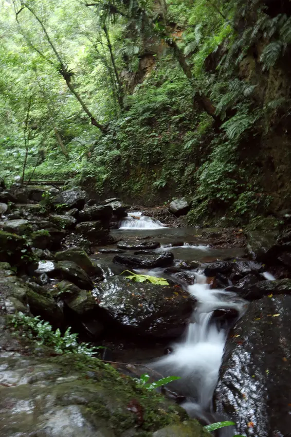 在溪谷之間,都搭設木棧道,下雨的天氣、加上沿途青苔、蕨類、植物,沿路都能感到身在熱帶雨林,是另外一種開闊的感覺。<全文介紹>
