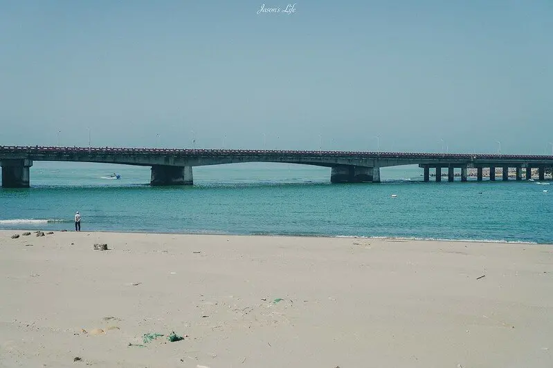 一路沿著堤防自行車道,穿過樹林,出現眼前的跨海大橋、沙灘,讓我不禁回想到日本沖繩的古宇利大橋,縮小版的日本海景就在眼前,真的超美...<全文介紹>