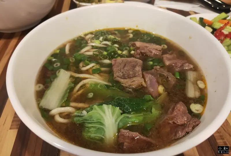 紅燒羊肉麵用大陶碗公裝盛,比美耐皿或是瓷碗,外觀更具厚實的傳統味,加上飄溢出的紅燒湯頭香,更是讓人垂涎。而看得出碗內,有不少塊厚實的羊肉塊~<全文介紹>
