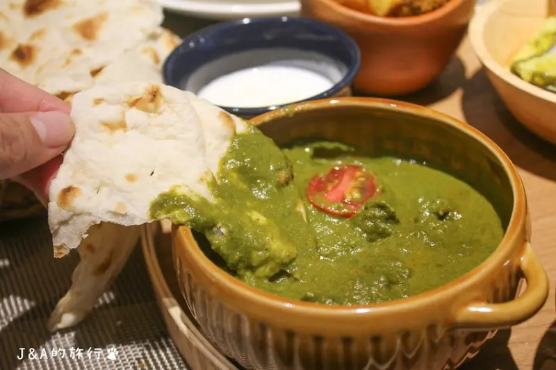 牛肉燉煮的還不錯,軟嫩富有彈性,跟菠菜咖哩也很對味,咖哩無論是配飯或拿烤餅沾都很好吃!印度家常餅邊緣較厚的地方吃起來Q軟,整體是帶有嚼勁、越嚼越香的口感。...<全文介紹>