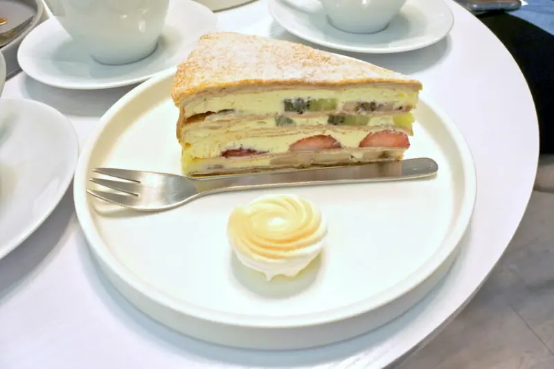 稍甜的水果千層是目前在台灣吃到最接近日本水果千層的口味,千層吃來層層柔薄嫩還帶點微微的Q感和麵皮香,香滑細濃的奶油濃郁不甜~<全文介紹>