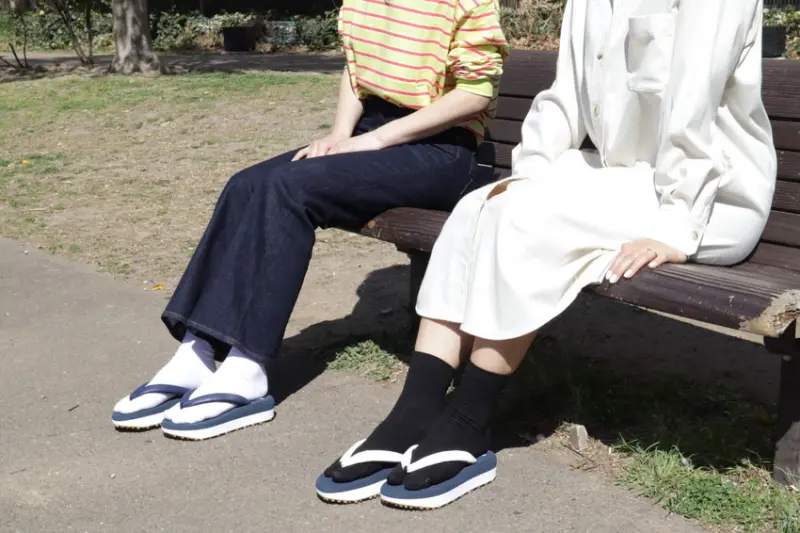 足袋就是所謂的「分趾襪」,在日本人身著和服、浴衣時除了木屐以外,經常也會選擇足袋;而地下足袋,就是底層為橡膠材質的分趾鞋,為了使傳統的地下足袋可以融入現今的日常生活,地下足袋的老牌製造商「株式會社丸五」,藉由不斷的改良,研發出符合現代人使用的足袋型休閒鞋、訓練鞋等多種改良型鞋款。![]()
