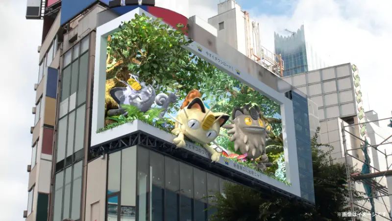 一年前日本新宿東口電視牆上出現的「3D三花貓」話題從日本一路延燒到台灣,如今為了配合全球8月8日的「世界貓咪日」,現在將主角換成了寶可夢系列的貓咪們,並一路播放到2022年9月5日,讓喜歡寶可夢和貓咪的人,有將近一個月的時間能夠捕捉畫面。