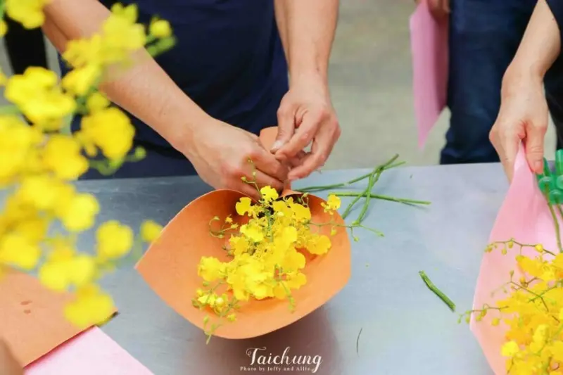 參觀完蘭花園,接著我們來到外面的空地,體驗蘭花花束DIY。先挑選自己喜歡的蘭花,將蘭花下方插上水保濕,排列成有層次的樣子,將文心蘭綁起來後顯得超有質感~<全文介紹>