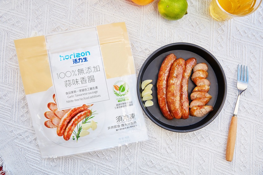 再來是讓人百吃不膩、回味無窮的「活力生100%無添加蒜味香腸」!加入新鮮蒜頭搗製的蒜泥,讓豬肉的鮮甜更有勁,剛剛好的蒜泥量讓香腸的蒜香滿溢而不辣,肉質扎實每一口都滿足!有蒜就是讚啦!
