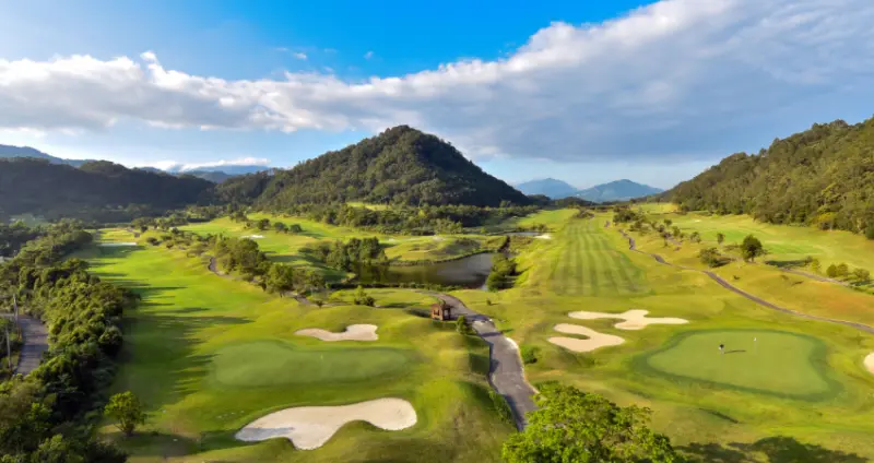 由歐美及日本高球大師設計的18洞球場,球道長7,128碼,有著美式球場的大氣和日式球場的細膩,巧妙地運用自然景觀的隔局,使打球饒富樂趣及變化,展現獨樹一格的視野與寧靜,讓您擊球專注不受干擾,輕鬆享受揮桿的暢快。主體建築是一棟洋溢著西班牙建築風格的會館,散發著18世紀莊園素樸內斂的氣質,位於會館二樓有著球場最棒視野的景觀餐廳,大片採光的玻璃窗景,俯瞰球場全貌盡收綠意美景,備有大小型貴賓廳滿足您各種聚會宴客的需求。