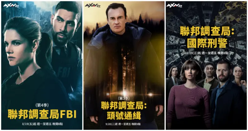 緊湊刺激的精彩內容讓《聯邦調查局FBI》系列在美國創下單周破千萬的亮眼收視率,更讓美國電視網確定續訂三部影集的新季度,讓警匪犯罪影迷們可以繼續跟著FBI破解重重謎團!《聯邦調查局:頭號通緝》首集於8月19日(五)晚間 9 點AXN 67頻道搶先播出;第二集起於9月20日(二)起,每週一至五晚間 8 點持續熱播。《聯邦調查局:國際刑警》首集於8月19日(五)晚間 10 點AXN 67頻道強檔播映;第二集起於10月19日(三)起每週一至五晚間 8 點繼續迎接劇情高潮!