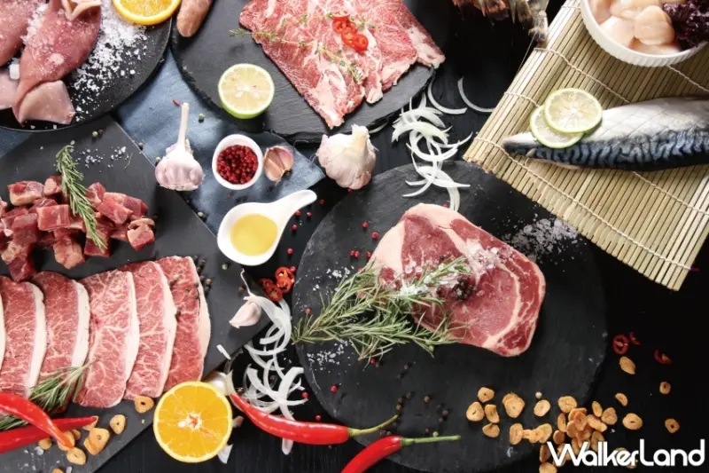 肉品:美國肋眼牛排、精選牛舌、精選橫膈膜、帶骨牛小排、經典胸腹牛、彈嫩松坂豬、經典豬梅花、椒鹽雞軟骨、椒鹽雞腿肉