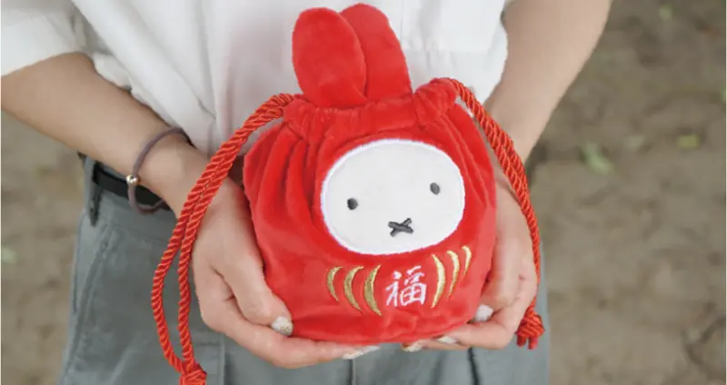 祈福米飛兔不倒翁造型收納袋「みっふぃー福だるま巾着」