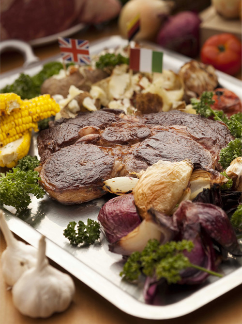 超厚實的「40盎司美國頂級沙朗牛排」(NT$3,280)不惜成本,嚴選PRIME等級背肩沙朗,以自然簡單的料理方式呈現絕佳原味,肉質鮮嫩柔軟,口感滑潤有勁,多汁甜美!搭配清爽的蕃茄、玉米、油封蒜頭、馬鈴薯與紅蘿蔔,超大份量足夠四至六人分享,絕對是享用頂級牛排的超值首選!