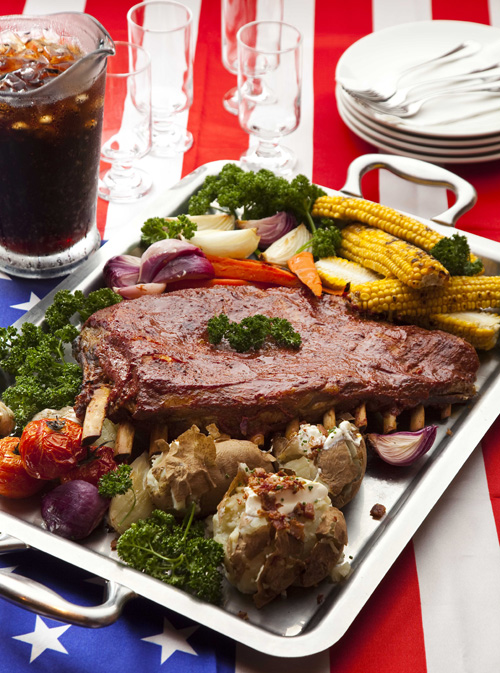 【無敵雙霸】中的另一霸「70盎司碳烤豬肋排」(NT2,680)美味也不容小覷。誠意十足的「70盎司碳烤豬肋排」重約兩公斤,精挑細選頂級豬肋排以自家精心調配的經典烤肉醬層層塗抹、豪邁的手法將超大豬肋排碳烤入味,口感軟而不爛,肉質腴而不肥。入口品嚐,香嫩中仍帶有肉類的嚼勁,搭配蕃茄、玉米、包心菜沙拉、炸薯片與紅蘿蔔,道地的美國風味絕對讓您食指大動!
